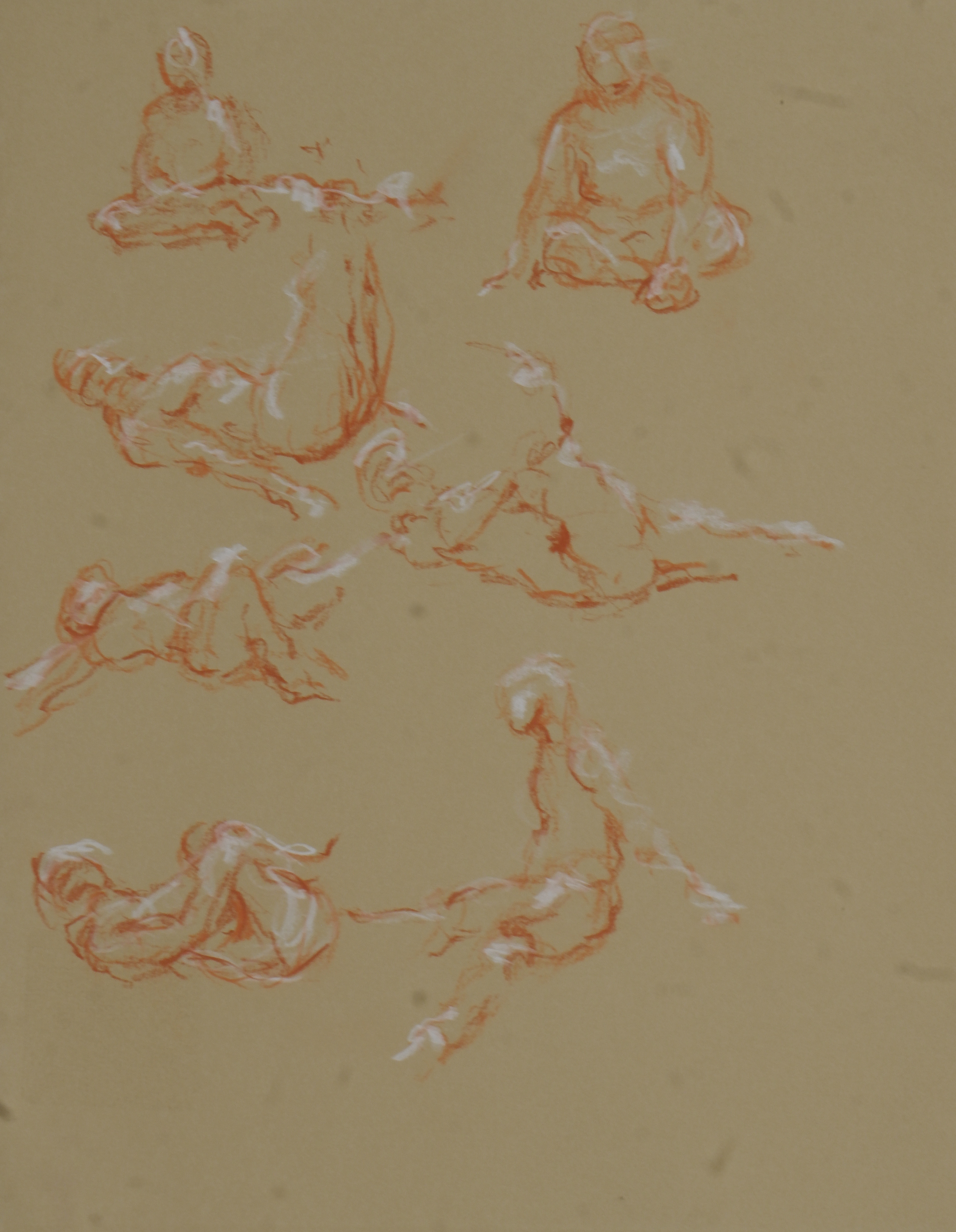 The drawing is done in sanguine and pastel chalk on tan RIves paper.