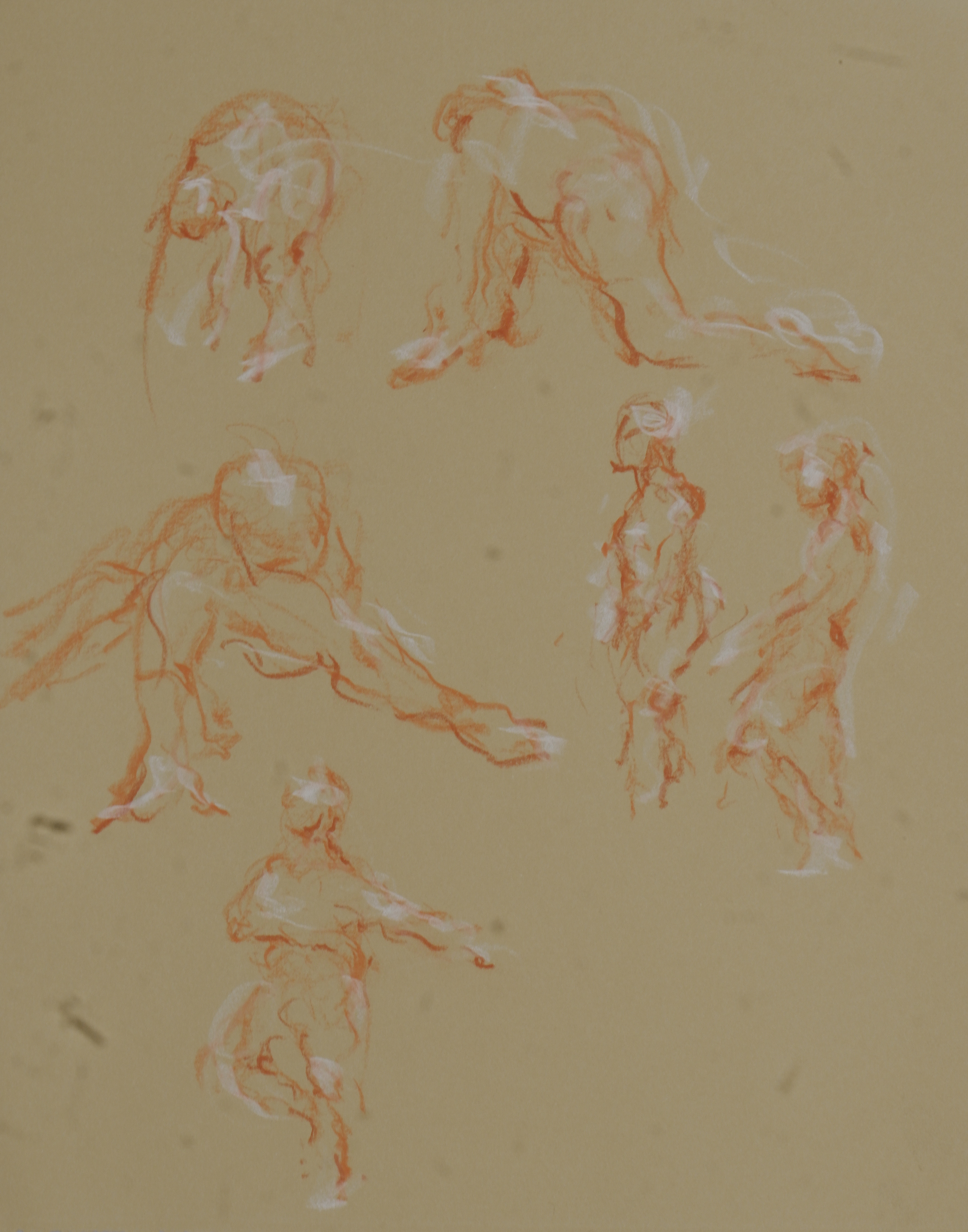 The drawing is done in sanguine and pastel chalk on tan RIves paper.