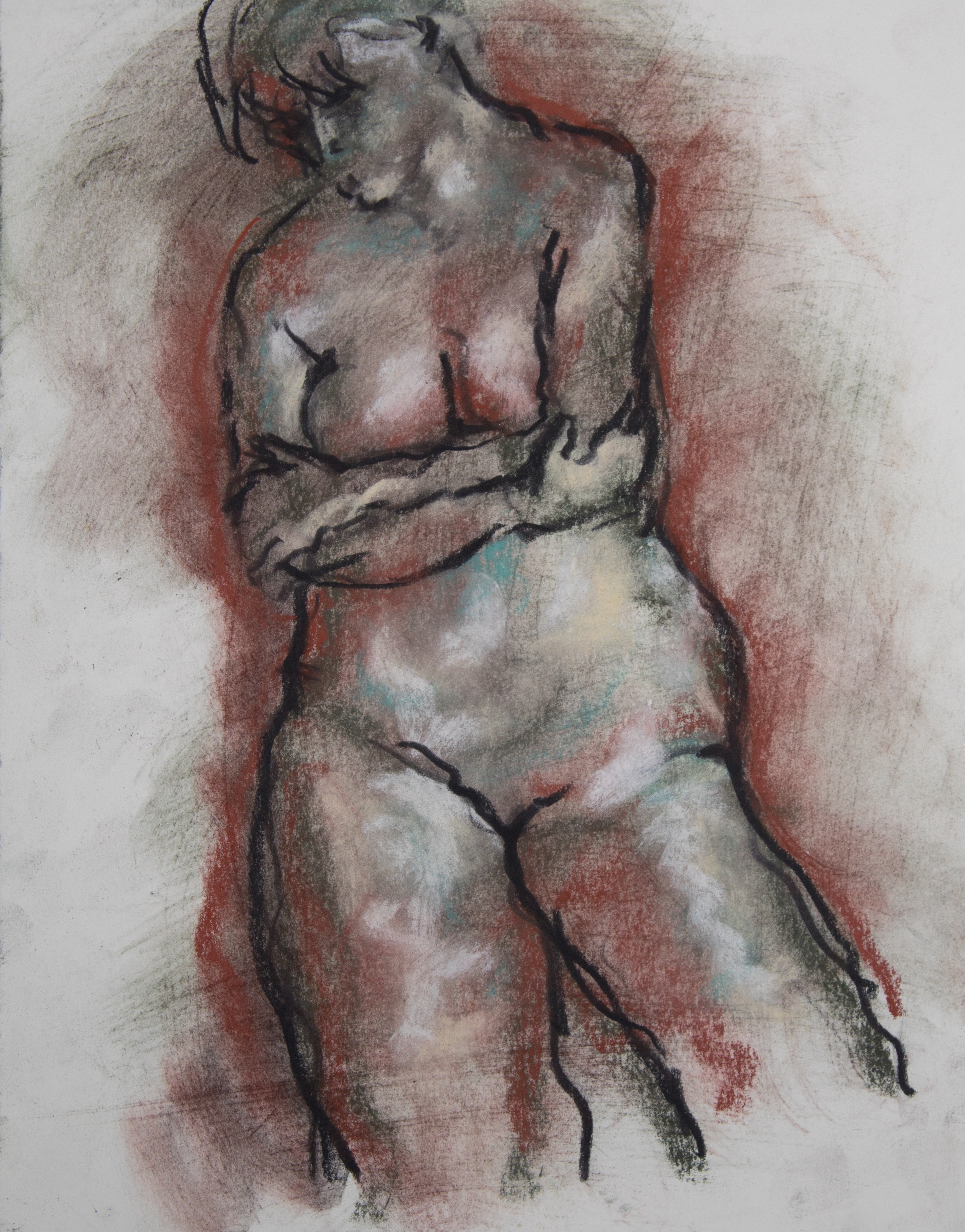 Drawing is of nude female done in charcoal and pastel on white drawing paper.