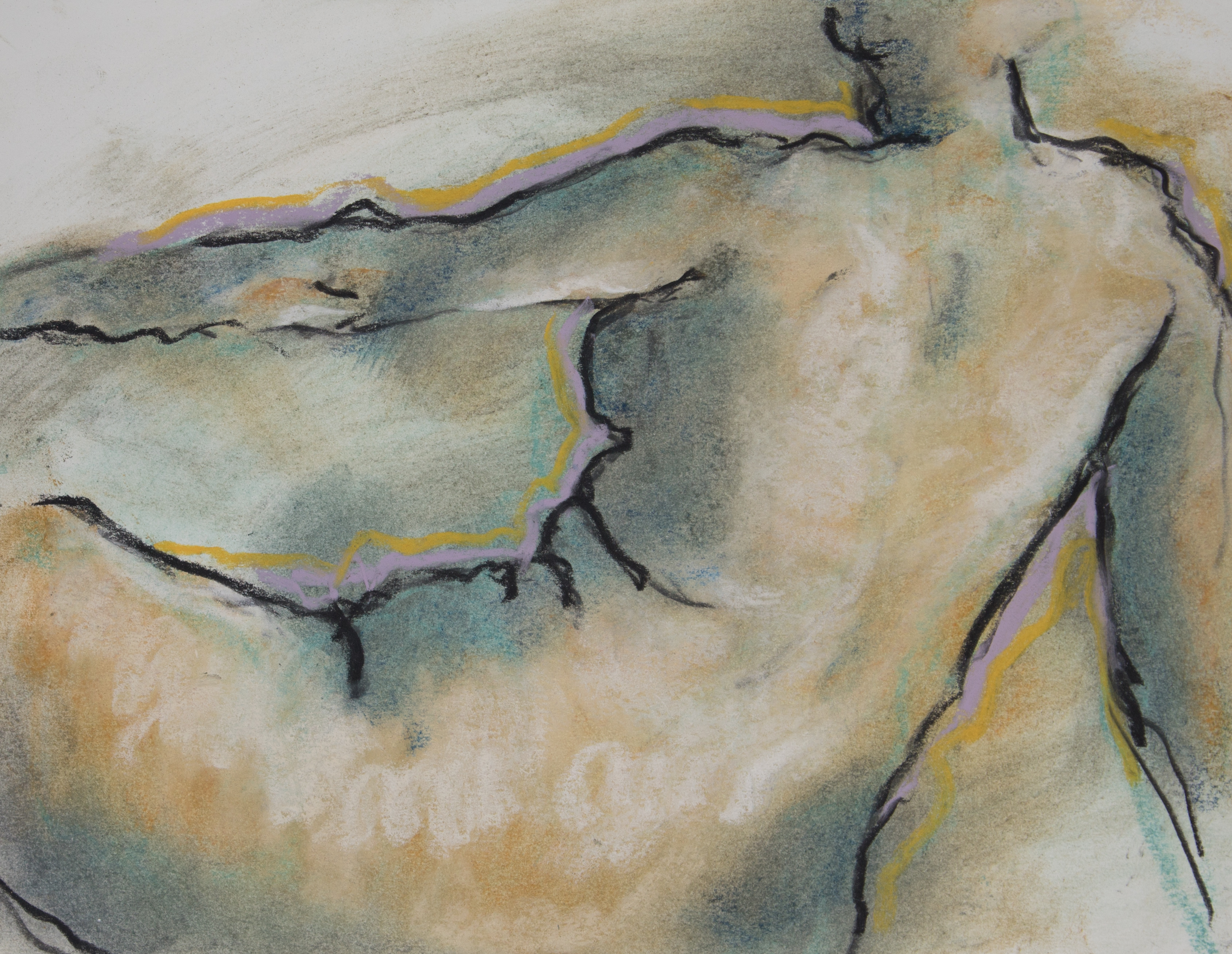 Drawing is of nude female done in charcoal and pastel on white drawing paper.