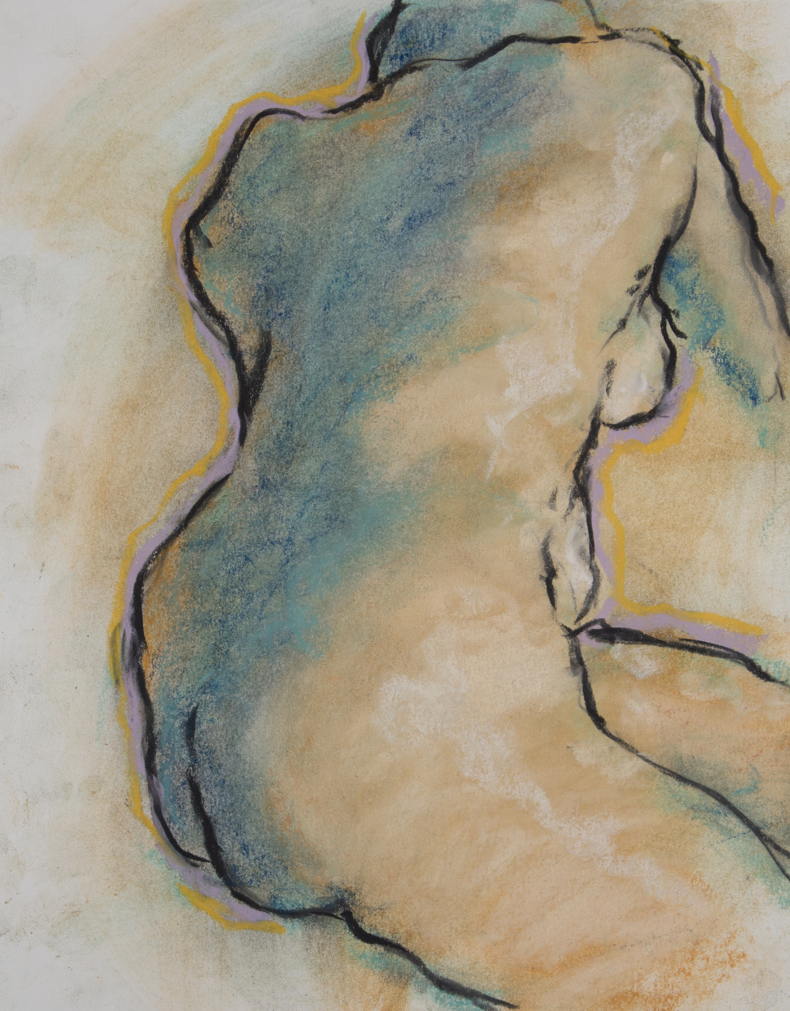 Drawing is of nude female done in charcoal and pastel on white drawing paper.