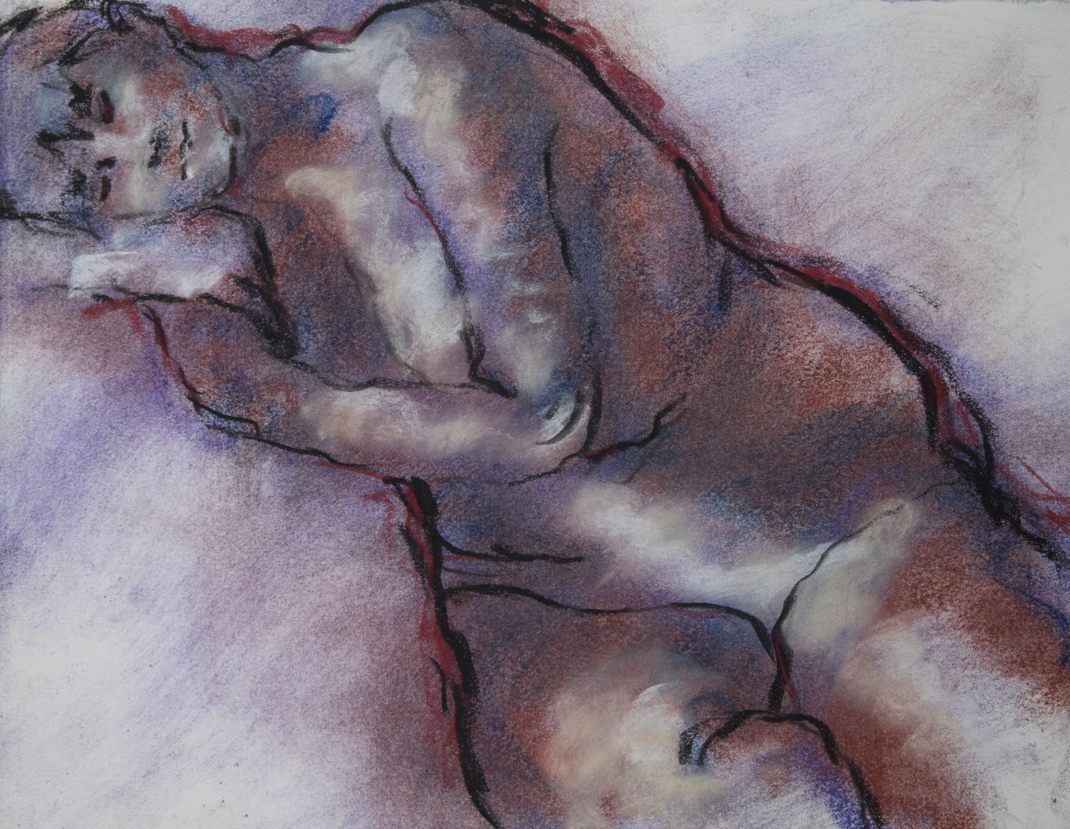 Drawing is of nude female done in charcoal and pastel on white drawing paper.