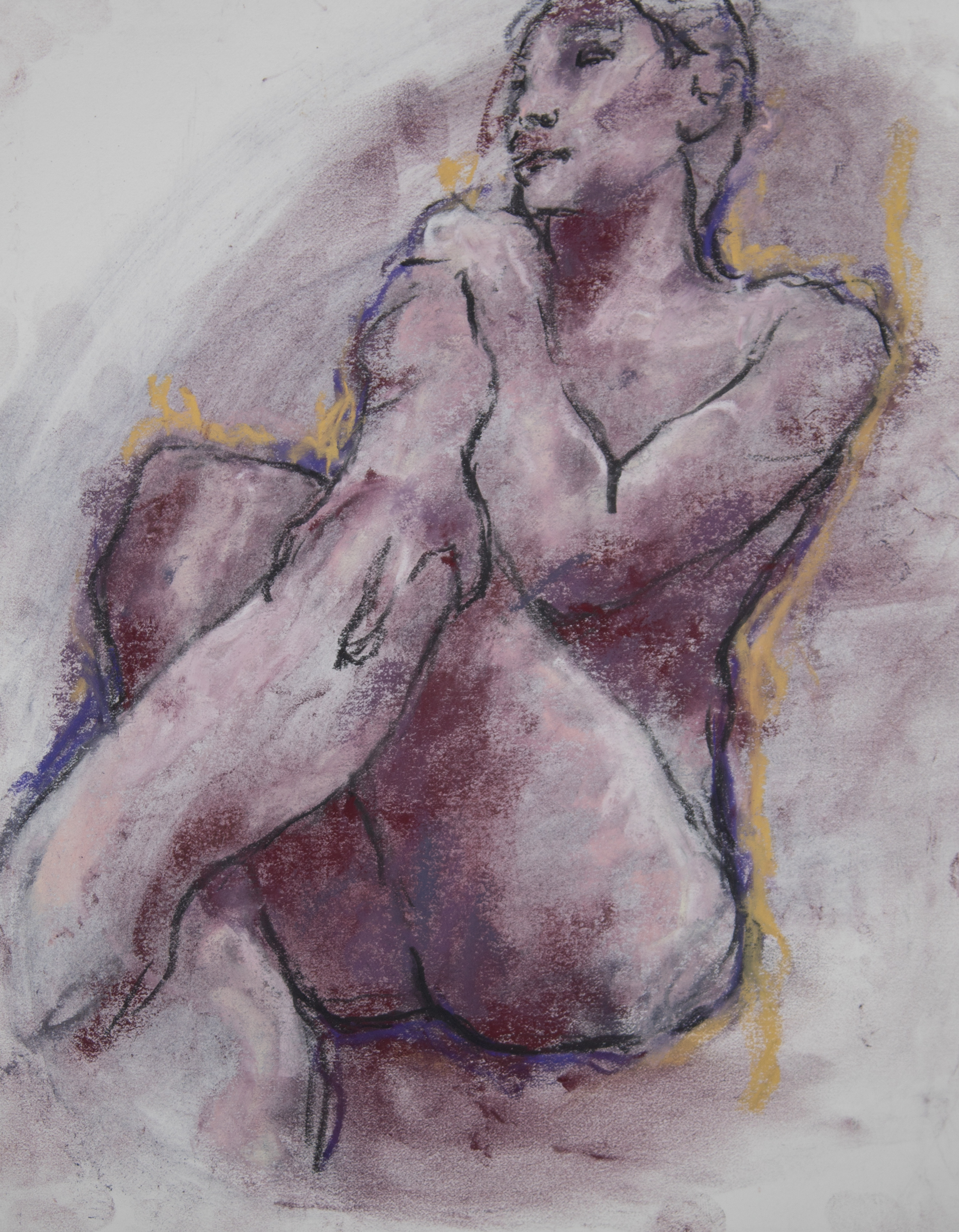 Drawing is of nude female done in charcoal and pastel on white drawing paper.