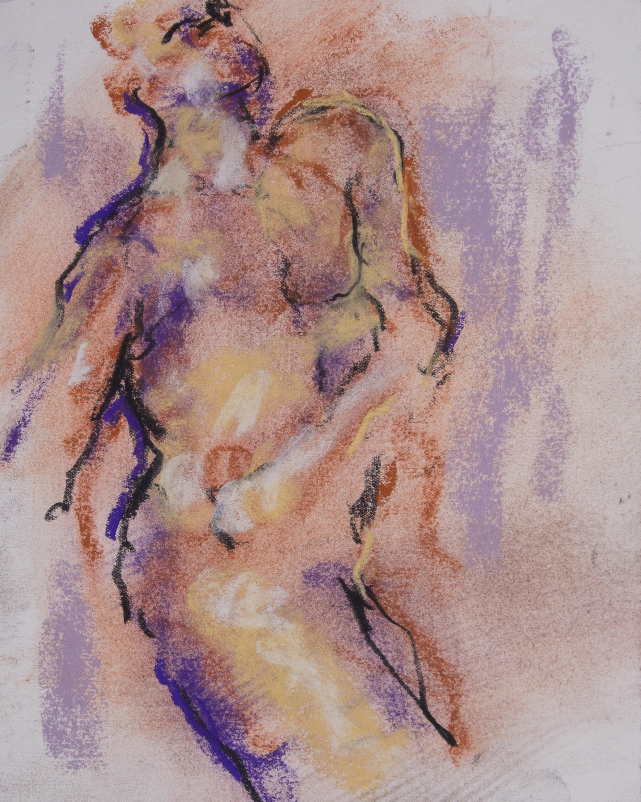 Drawing is of nude male done in charcoal and pastel on white drawing paper.