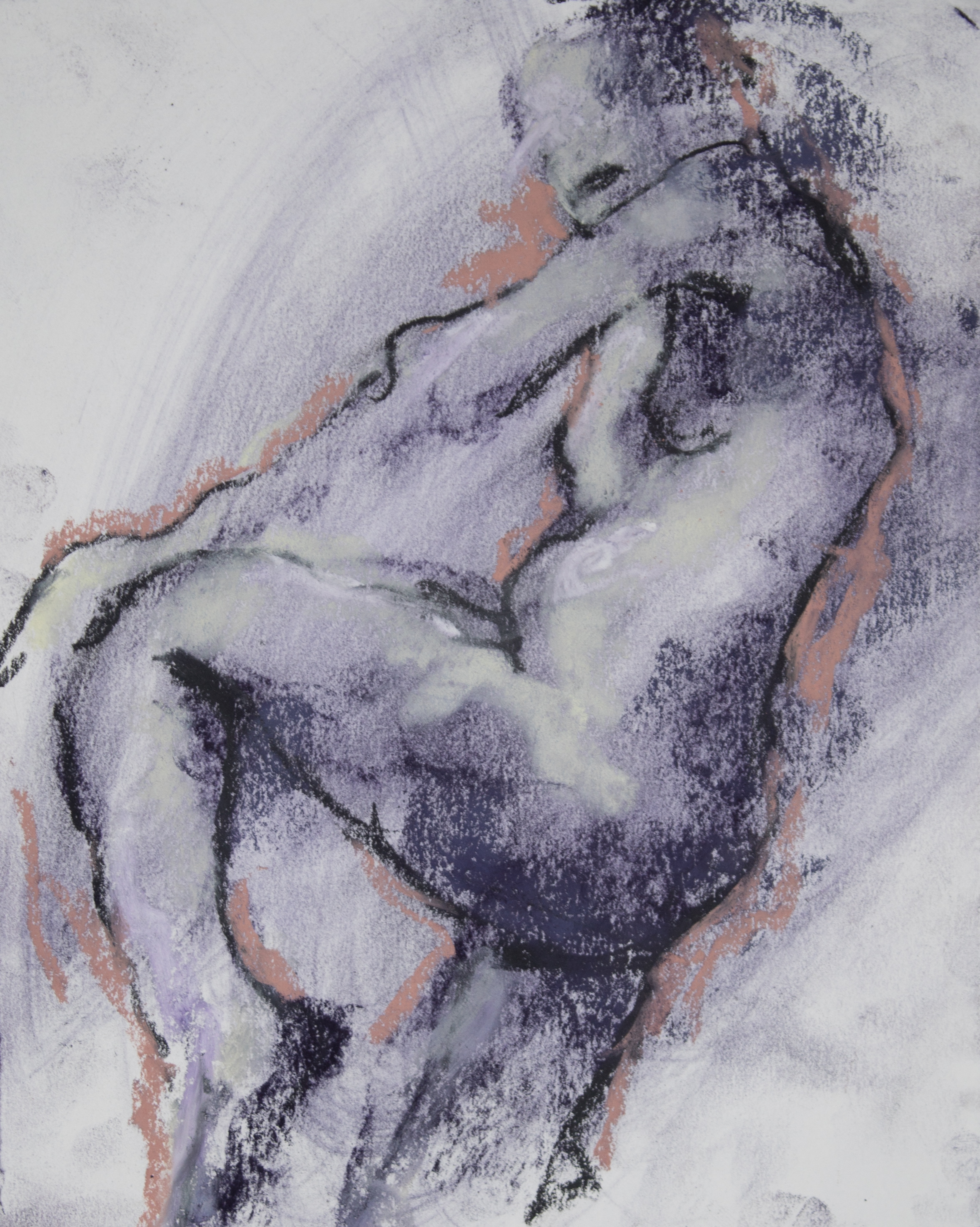 After several decades of constant life drawing I have worked out a method that keeps joy in the process and sustains me day to day. I start with a thick contour and then smudge it with a cloth after which I refine with a more definitive line and add shadow and highlights to finish. I have been exploring a multicolored line and add energy to the charcoal line with adjacent color often bright or complementary to the overall tone. I like to price my work affordably so that it is accessible to the widest possible audience. We need original art on our walls and in our lives. I am always honored when my drawings are chosen.