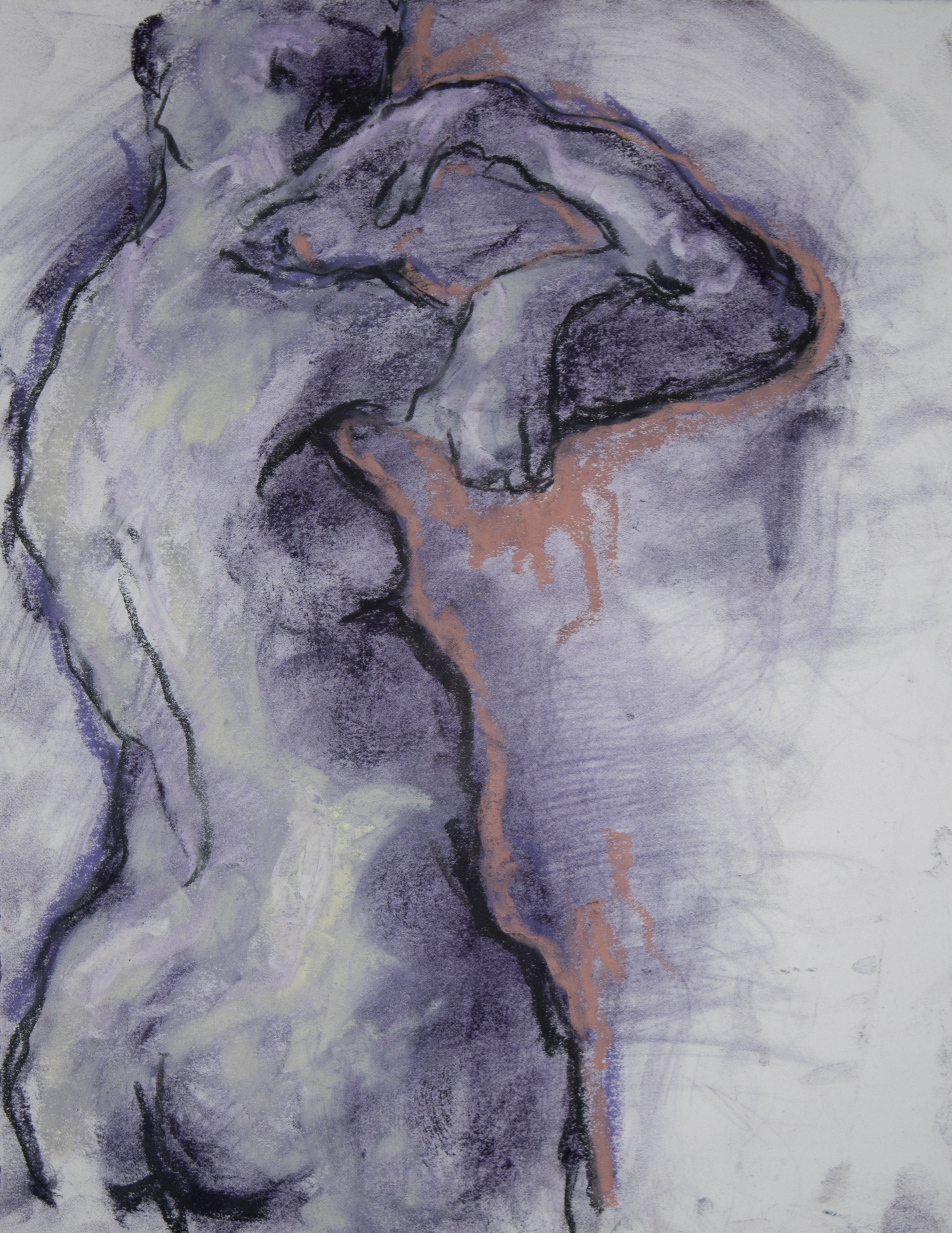 After several decades of constant life drawing I have worked out a method that keeps joy in the process and sustains me day to day. I start with a thick contour and then smudge it with a cloth after which I refine with a more definitive line and add shadow and highlights to finish. I have been exploring a multicolored line and add energy to the charcoal line with adjacent color often bright or complementary to the overall tone. I like to price my work affordably so that it is accessible to the widest possible audience. We need original art on our walls and in our lives. I am always honored when my drawings are chosen.