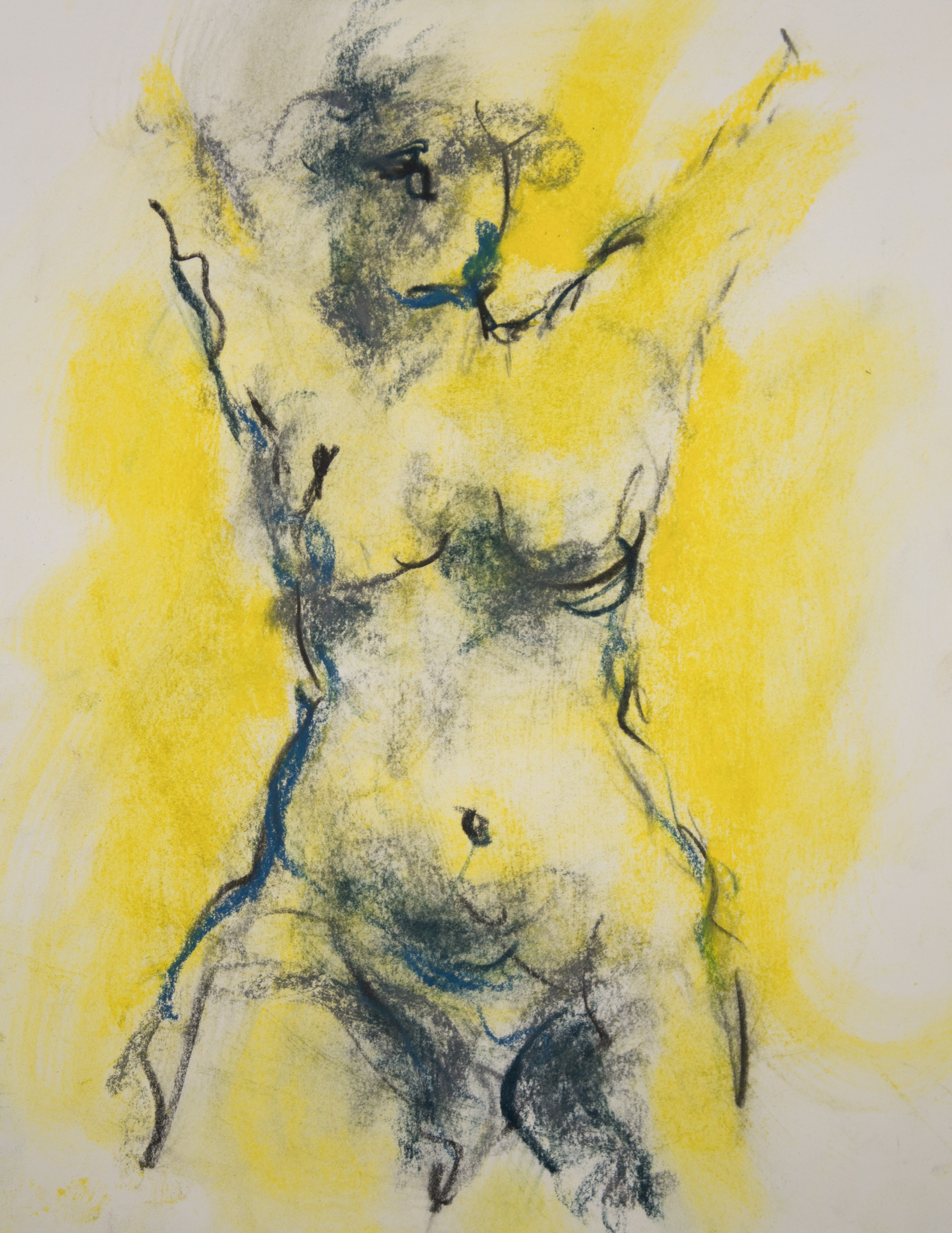 Drawing is of nude female done in charcoal and pastel on white drawing paper.