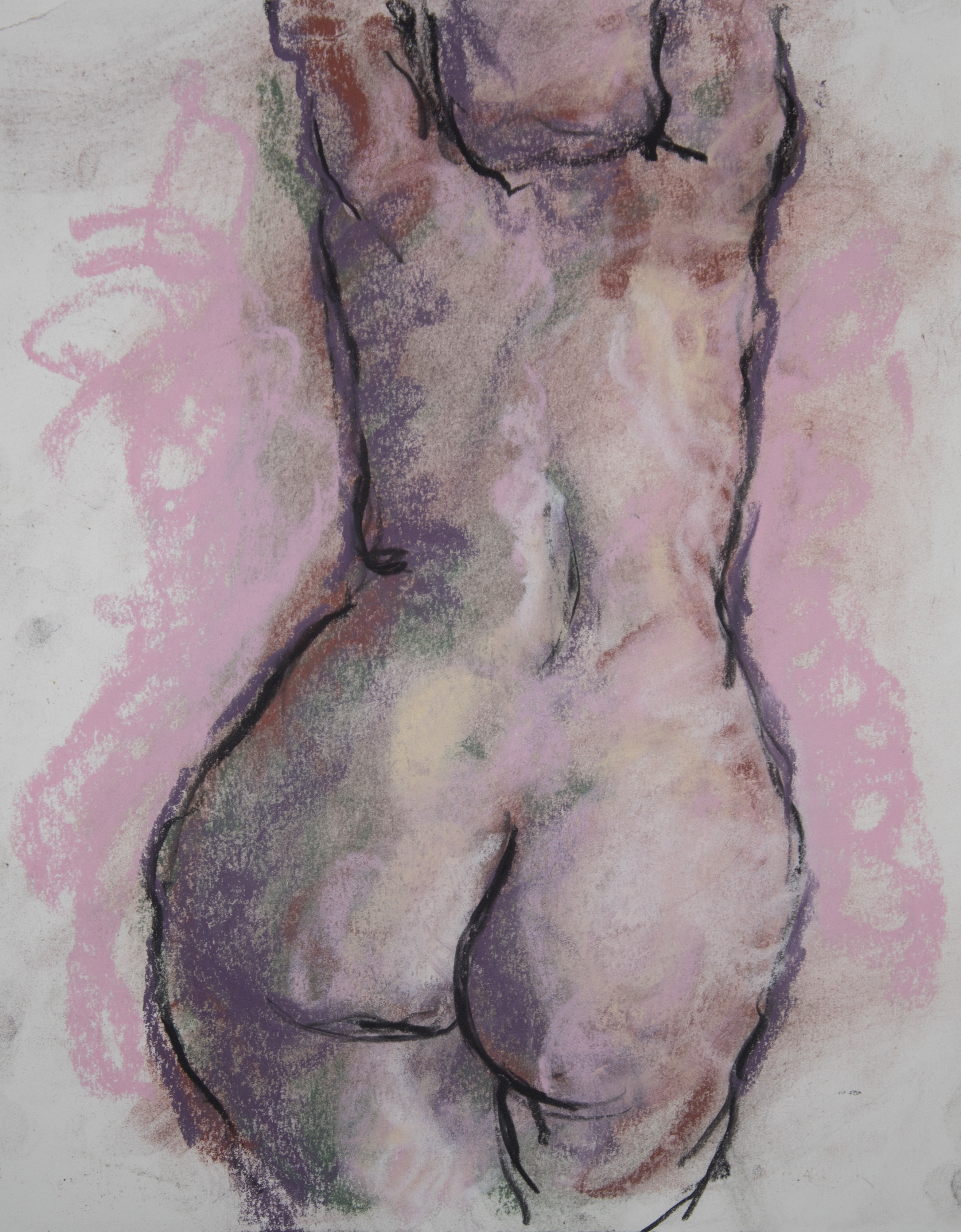Drawing is of nude female done in charcoal and pastel on white drawing paper.