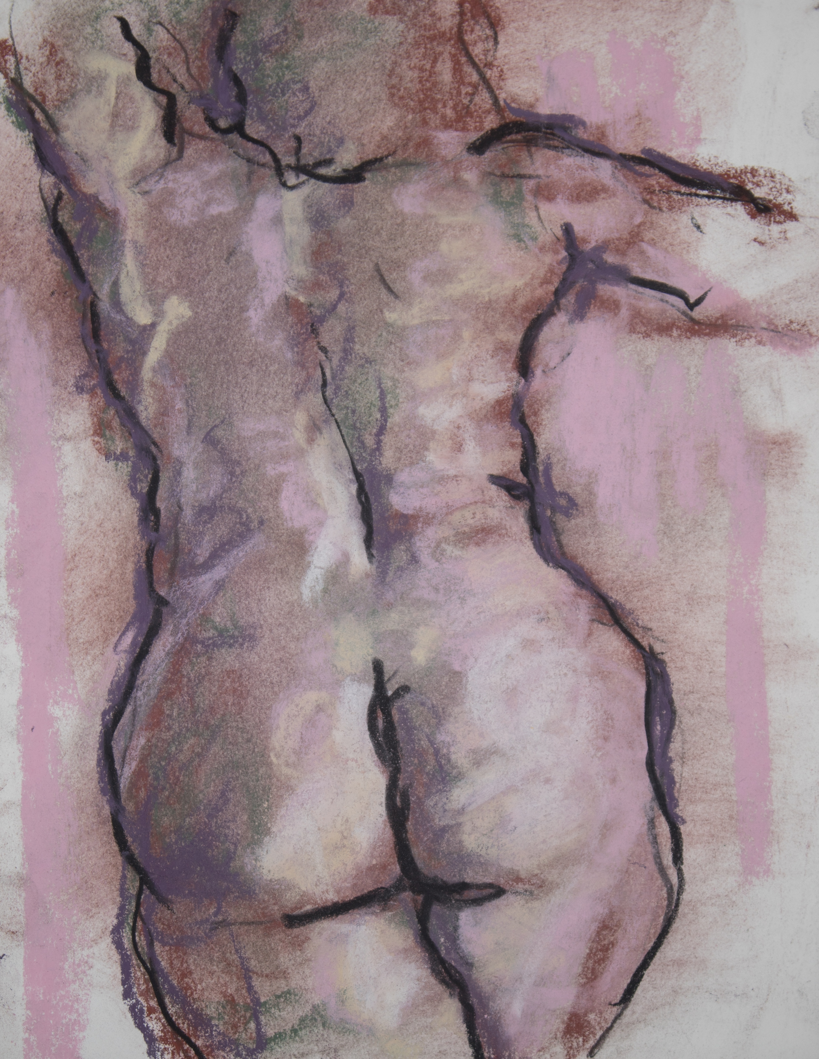 Drawing is of nude female done in charcoal and pastel on white drawing paper.