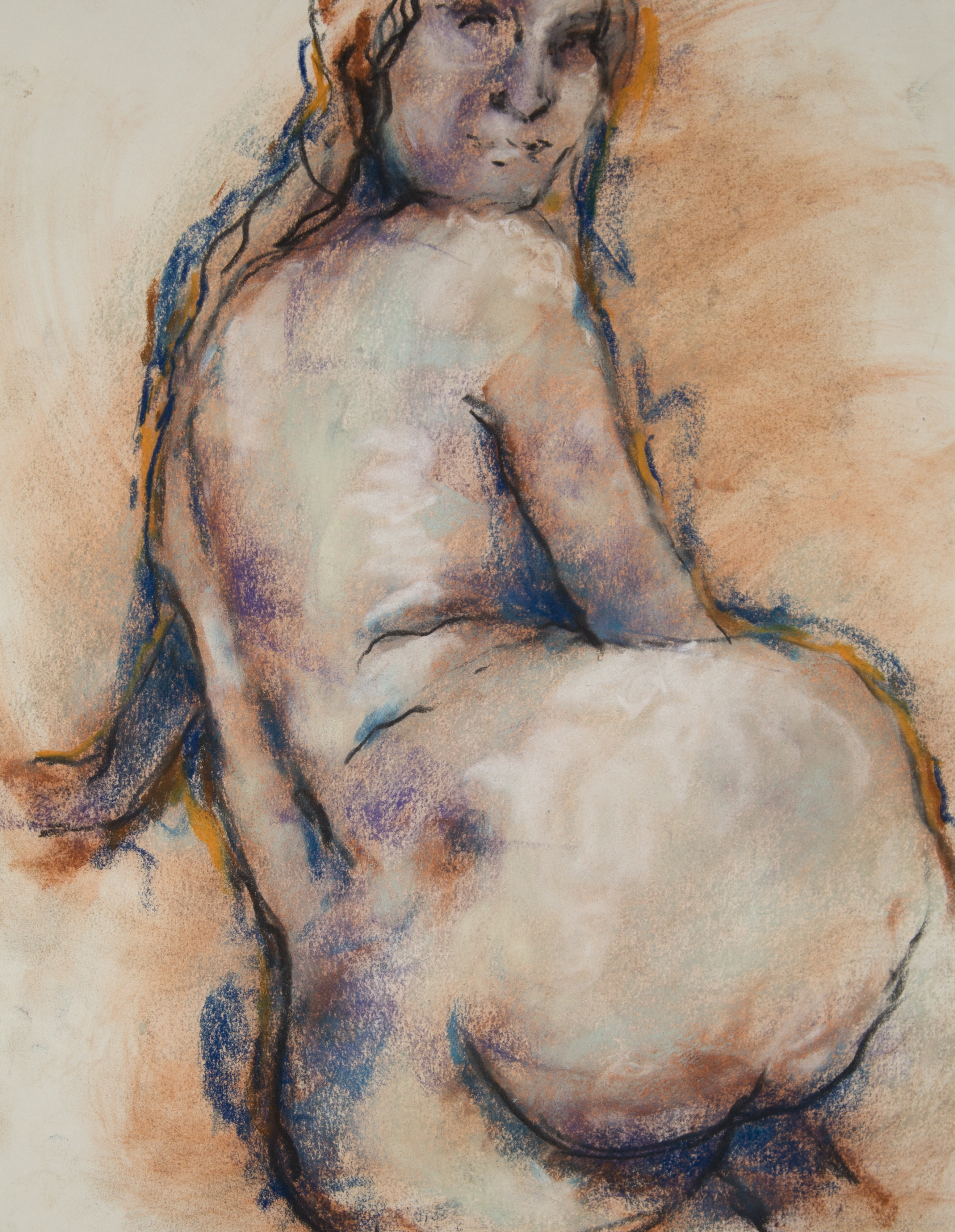 Drawing is of nude female done in charcoal and pastel on white drawing paper.