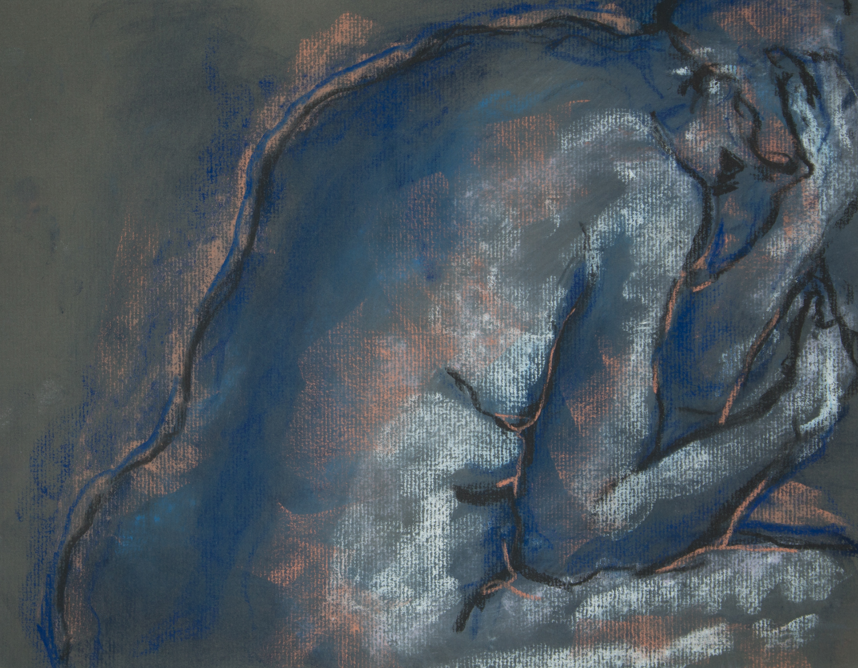 Drawing is of nude female done in charcoal and pastel on gray drawing paper.