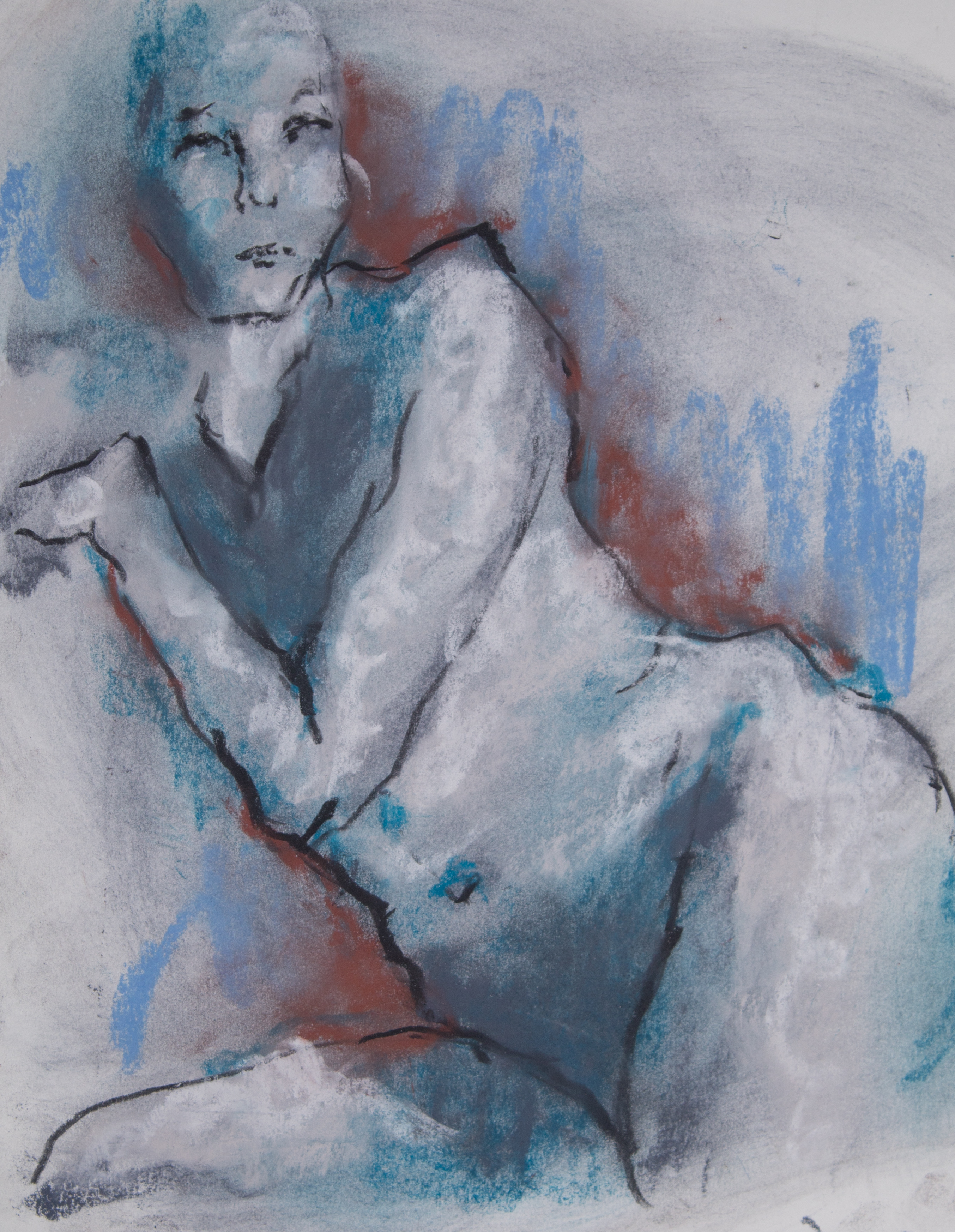 Drawing is of nude female done in charcoal and pastel on white drawing paper.