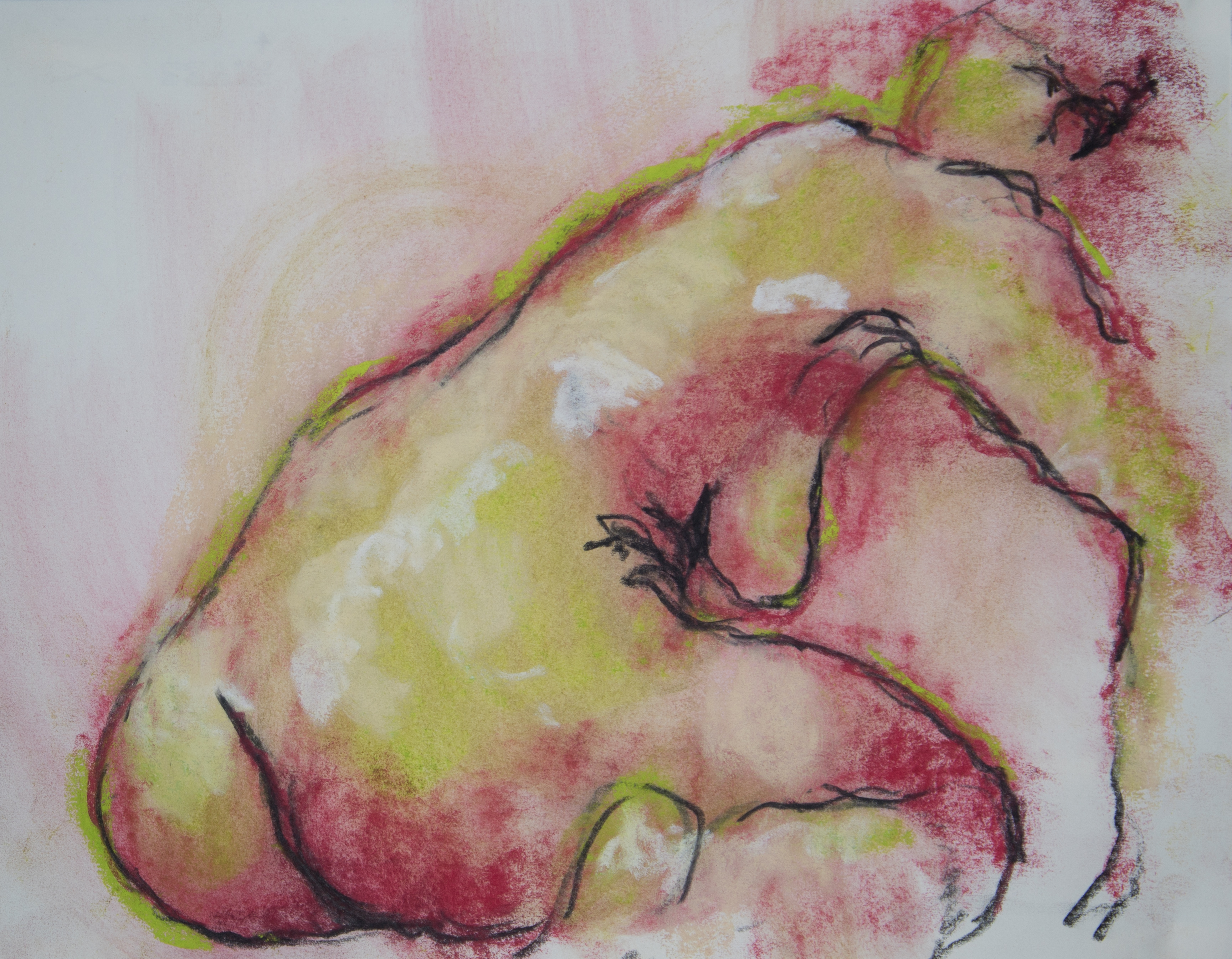 Drawing is of nude female done in charcoal and pastel on white drawing paper.